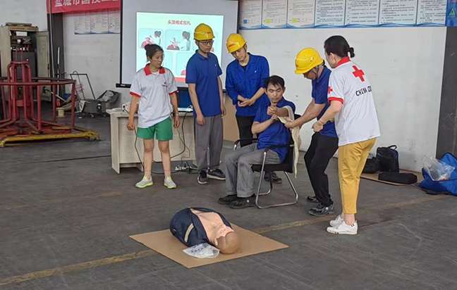演練前,國投新材料公司“安全生產(chǎn)月”活動(dòng)領(lǐng)導(dǎo)小組召開專題會(huì)議部署演練事宜,要求責(zé)任部門認(rèn)真落實(shí)任務(wù),精心設(shè)計(jì)演練方案,細(xì)化腳本、有序組織、確保質(zhì)量。演練邀請(qǐng)了市紅十字會(huì)講師到場(chǎng)指導(dǎo),圍繞工業(yè)生產(chǎn)中最容易發(fā)生的“觸電”和“機(jī)械傷害”事故展開,分別進(jìn)行了應(yīng)急救護(hù)知識(shí)培訓(xùn)、事故現(xiàn)場(chǎng)處置和救護(hù)技能實(shí)操練習(xí)。現(xiàn)場(chǎng)人員密切配合,演練步驟環(huán)環(huán)相扣,達(dá)到了預(yù)期效果。