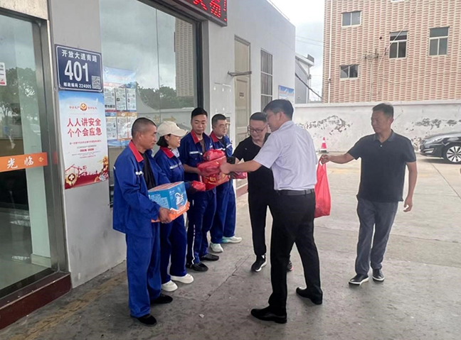 活動中,物資集團和新倫石化公司負責(zé)人一行來到大徐、金達加油站,為一線職工送上防暑降溫物品,關(guān)切詢問大家的日常工作情況,叮囑他們在高溫期間要合理安排作業(yè)時間,注重勞逸結(jié)合,做好個人防護。隨后,物資集團負責(zé)人詳細了解加油站經(jīng)營銷售情況,并要求現(xiàn)場管理人員切實做好防暑降溫措施和防汛工作,加強對加油機、油罐區(qū)、配電室等設(shè)備設(shè)施的日常巡查,及時消除安全隱患,營造平安穩(wěn)定的工作環(huán)境。