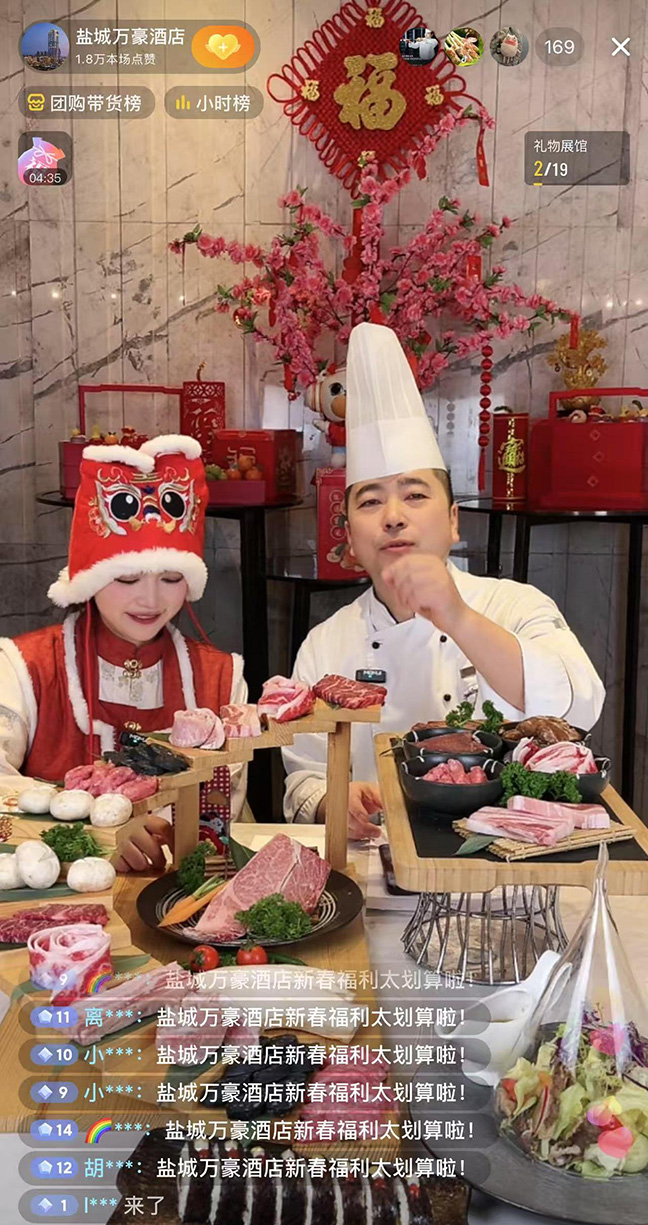 線上營銷持續(xù)發(fā)力,通過“OTA平臺+官方商城+抖音直播”等模式組織開展酒店產(chǎn)品直播16場,營銷推文閱讀量達(dá)7萬次,短視頻播放量達(dá)8萬次。
