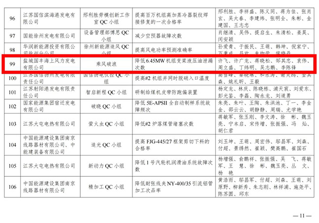 近日,鹽城國(guó)豐公司質(zhì)量管理小組的“降低6.45Mw機(jī)組變槳液壓油泄漏次數(shù)”與“液壓變?nèi)鞠到y(tǒng)Hydroll蓄能器系統(tǒng)升級(jí)”兩個(gè)課題,分別榮獲2025年度江蘇省電力行業(yè)QC小組發(fā)布一等成果與二等成果。