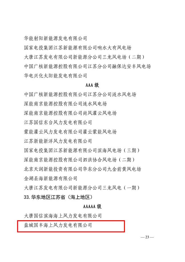 近日,中國電力企業(yè)聯(lián)合會公布2024年度全國風(fēng)電場生產(chǎn)運行指標(biāo)評比結(jié)果。由鹽城國投集團運營的國能大豐H5#海上風(fēng)電場,在全國3511家參評風(fēng)電場中脫穎而出,獲評行業(yè)最高榮譽——“AAAAA級”風(fēng)電場。此次評選中,華東地區(qū)江蘇省(海上地區(qū))僅有2家風(fēng)電場獲此殊榮,其中,國能大豐H5#海上風(fēng)電場也是全國唯一一家獲評“AAAAA級”的地級市國有企業(yè)運營風(fēng)電場,彰顯出國投集團在新能源領(lǐng)域,特別是海上風(fēng)電運營管理方面的強勁實力。