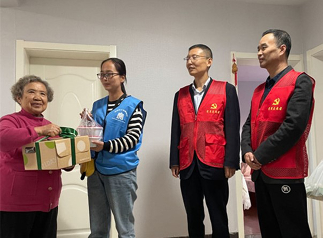 活動中,黨員志愿者們來到桂苑社區(qū)華佳梅苑小區(qū),同社區(qū)工作人員一起為老黨員們送去精心準備的食品和書籍,并與他們拉家常,傾聽他們的心聲,關切詢問他們的日常起居、身體健康情況,并叮囑老人們在換季時節(jié)注意天氣變化,及時增添衣物,保重身體、安度晚年。一聲問候,幾句細語,洋溢著濃濃的情意,讓老黨員們深切感受到黨組織的關懷與溫暖。