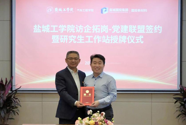 雙方還簽訂了黨建聯(lián)盟協(xié)議,王資生為國(guó)投新材料公司進(jìn)行研究生工作站授牌,國(guó)投新材料公司為鹽城工學(xué)院汽車工程學(xué)院副院長(zhǎng)鄭竹安頒發(fā)“科技副總”聘書(shū)。雙方一致表示,要以此次合作為契機(jī),搭建學(xué)習(xí)交流平臺(tái),在產(chǎn)學(xué)研深度融合、學(xué)院學(xué)生就業(yè)上進(jìn)一步加強(qiáng)溝通對(duì)接、深化戰(zhàn)略合作,攜手譜寫(xiě)校企合作新篇章。