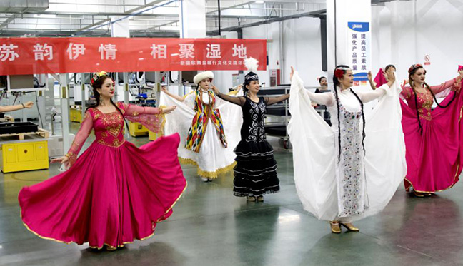 為進一步加強集團企業(yè)文化建設,履行國有企業(yè)社會責任,促進民族團結交流,5月13日至14日,鹽城國投集團邀請來自新疆伊犁察布查爾縣的文藝表演團隊,赴國投中科公司、鹽城天然氣開發(fā)公司、國投新材料公司、東南創(chuàng)投公司、鹽城萬豪酒店等單位開展演出活動,為一線職工帶來多場具有濃郁民族特色的文化體驗。